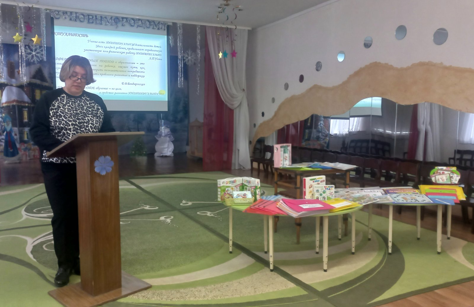 В рамках педагогического совета была организована выставка "Методическая мозаика". Воспитатели дошкольного образования всех возрастных групп, учителя-дефектологи поделились своими наработками по теме годовой задачи.