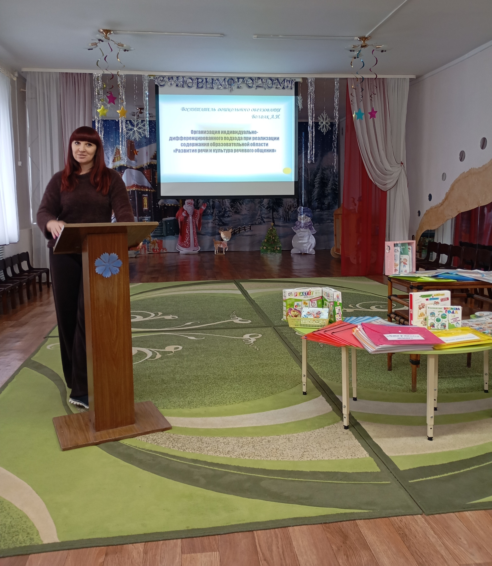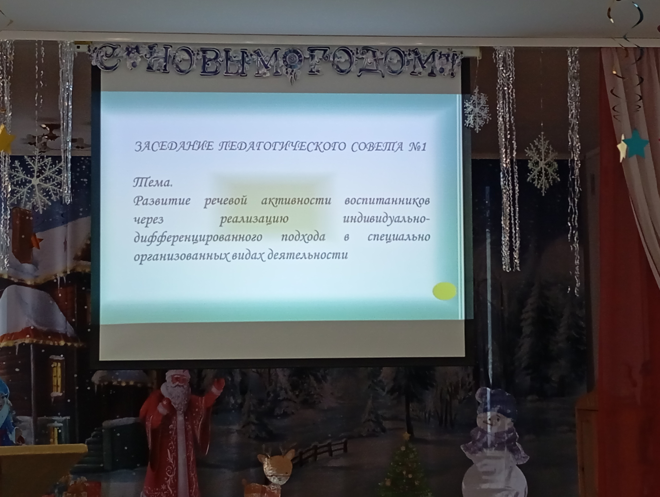 2 декабря состоялось заседание педагогического совета, на котором были рассмотрены вопросы развития речевой активности воспитанников через реализацию индивидуально-дифференцированного подхода в специально организованной деятельности. В соответствии с повесткой дня заместитель заведующего по основной деятельности Веруш О.М. озвучила результаты тематического контроля, затем выступили педагоги. Опыт организации индивидуально-дифференцированного подхода при реализации содержания образовательной области "Развитие речи и культура речевого общения" презентовала воспитатель дошкольного образования Болдак А.И. Вопрос развития речевой активности воспитанников через реализацию индивидуально-дифференцированного подхода на занятиях образовательной области «Элементарные математические представления» раскрыла воспитатель дошкольного образования Пивоварчик В.В.