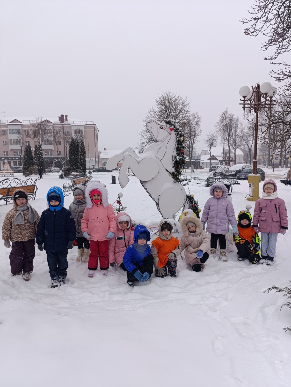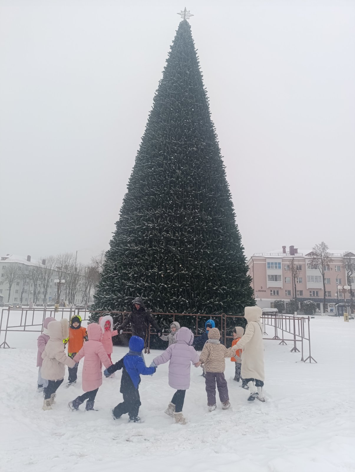 Сегодня воспитанники групп интегрированного обучения и воспитания "А", "Б", "В" совершили увлекательную целевую прогулку к главной новогодней елке нашего города.