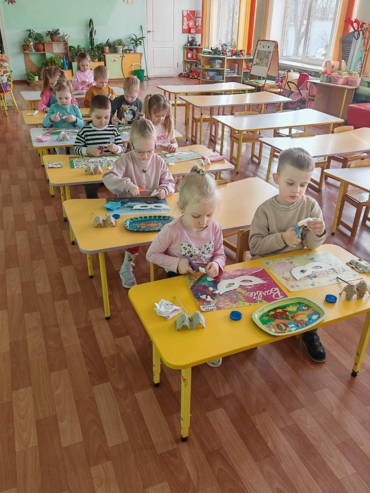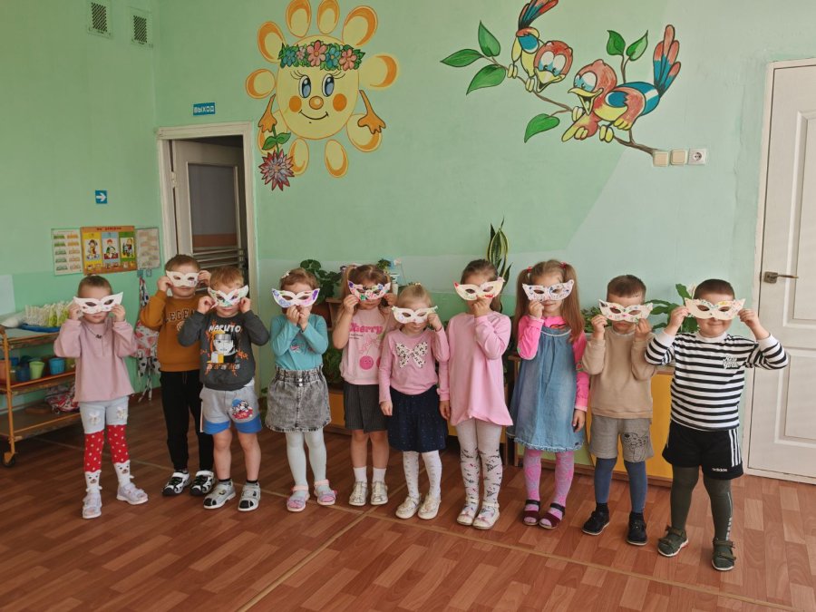 Теперь наши ребята готовы к любому празднику! Посмотрите на эти сияющие глаза и невероятные маски — кажется, в группе поселилось немного волшебства.