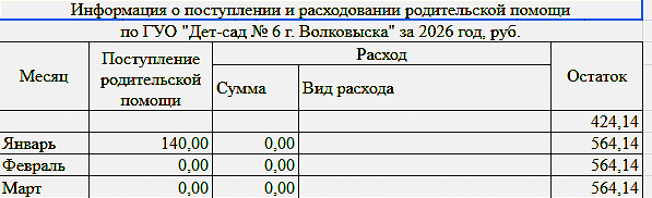 На основании этого, финансовые средства добровольных родительских взносов, поступающие в учреждение образования, зачисляются на текущий (расчётный) счёт по учёту внебюджетных средств – на расчетный счет BY76AKBB 3642 5120 0175 1410 0000, УНП 500842593, ОКПО 501935244000, счет в филиале № 402 БИК AKBBBY2Х с обязательным указанием наименования учреждения образования - для ГУО «Детский сад №6 г.Волковыска» и используются по целевому назначению в соответствии с решением Попечительского Совета учреждения и утверждённой сметой.